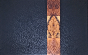 Ein Stirnholzbrett aus Wenge und Eibe. Stirnholz ist durch seine mit der Schnittrichtung laufenden Fasern besonders schnittfest und schont dadurch zudem die Schneiden der Messer.