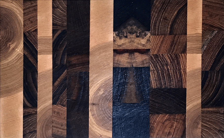 Ein Frühstücksbrett aus Esche, dessen Additionshölzer aus Teak, Wenge und Padouk bestehen. Größe ca. 29 x 18 cm (Größen können produktionsbedingt leicht abweichen).
