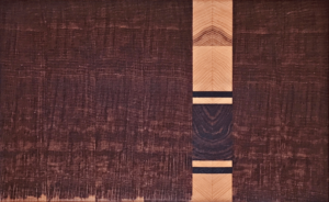 Ein Stirnholzbrett aus Kupfereiche, Esche und diversen Additionshölzern. Stirnholz ist durch seine mit der Schnittrichtung laufenden Fasern besonders schnittfest und schont dadurch zudem die Schneiden der Messer.